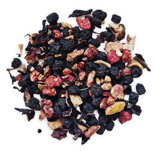 ✅ Składniki – jabłko, owoce jagody (20%), owoce aronii (20%), kwiat hibiskusa (17%), owoce czarnego bzu, aromat