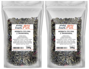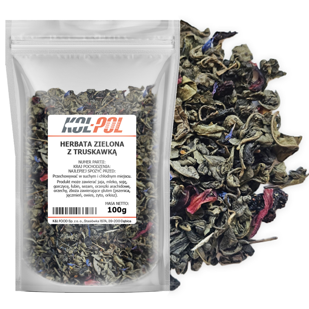 - Składniki Herbata zielona 78%, kwiat hibiskusa, owoce truskawki 5%, aromat, liść poziomki, kwiat nagietka, kwiat bławatka