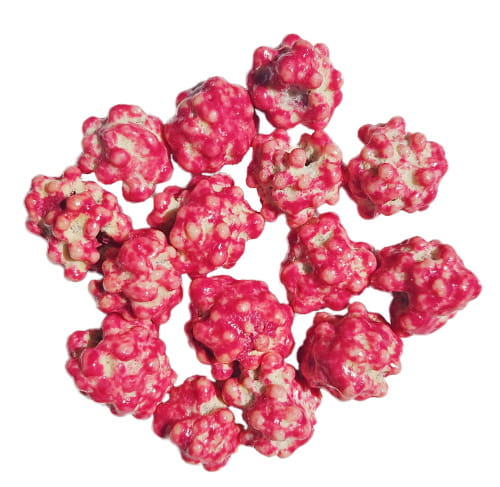 ✅ Składniki – biała czekolada 88,95% (cukier, tłuszcz kakaowy, mleko w proszku, masa kakaowa, emulgator: lecytyna sojowa, ekstrakt waniliowy), maliny liofilizowane 10%, mieszanka glazurująca 1% (syrop glukozowy, guma arabska, szelak, olej roślinny (kokosowy, rzepakowy), dekstryna), barwnik 0,05% (olej słonecznikowy, maltodekstryna, koncentrat buraka czerwonego, emulgator E472c, regulator kwasowości: kwas cytrynowy E330, przeciwutleniacz: E307, barwniki: E120, E160e)