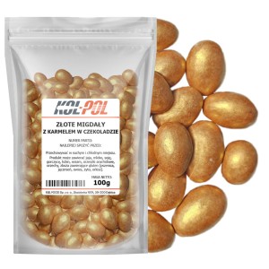 Migdały w czekoladzie z karmelem i złotą posypką 100g