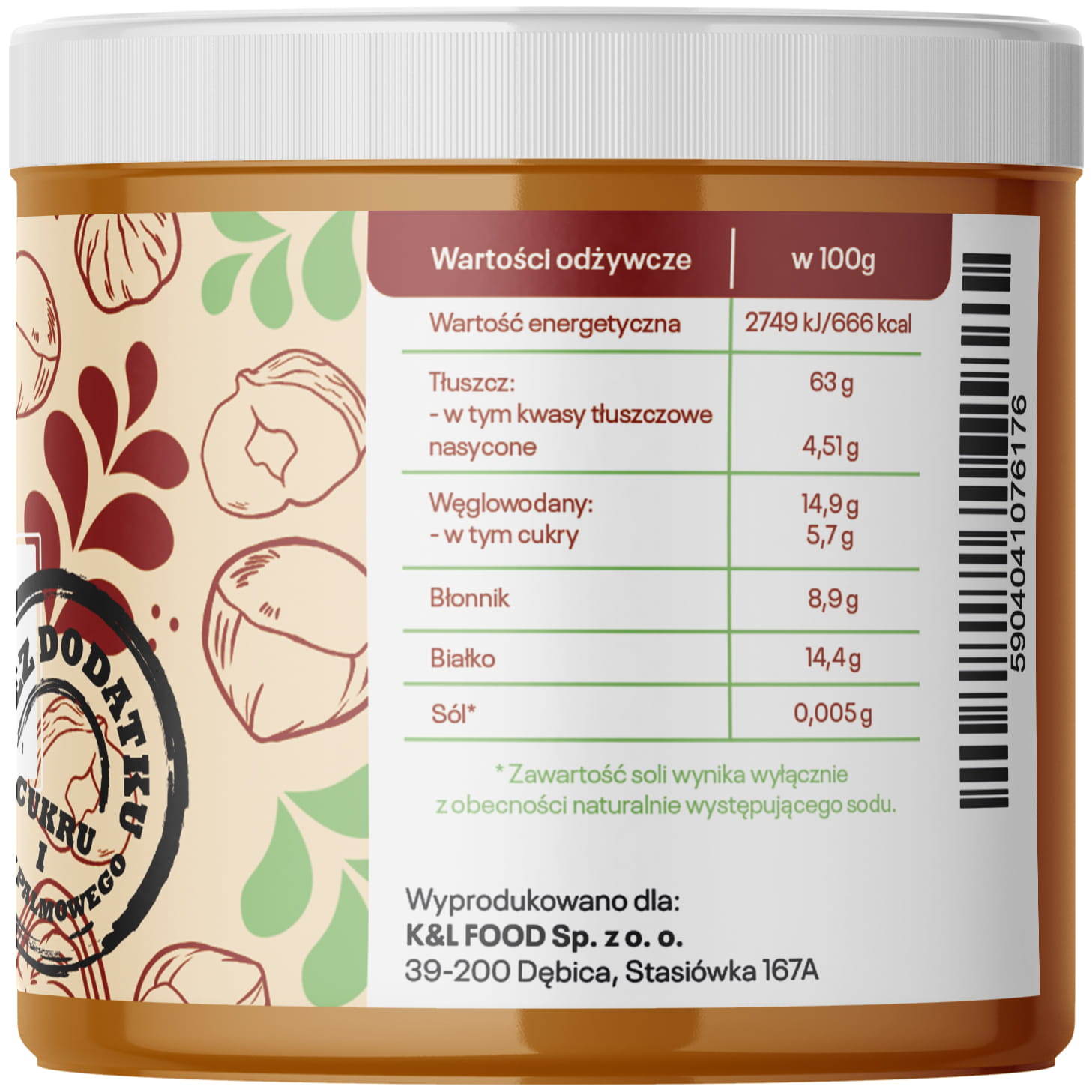 ✅ 100% naturalny skład – tylko orzechy laskowe, bez dodatku cukru, soli czy oleju palmowego.