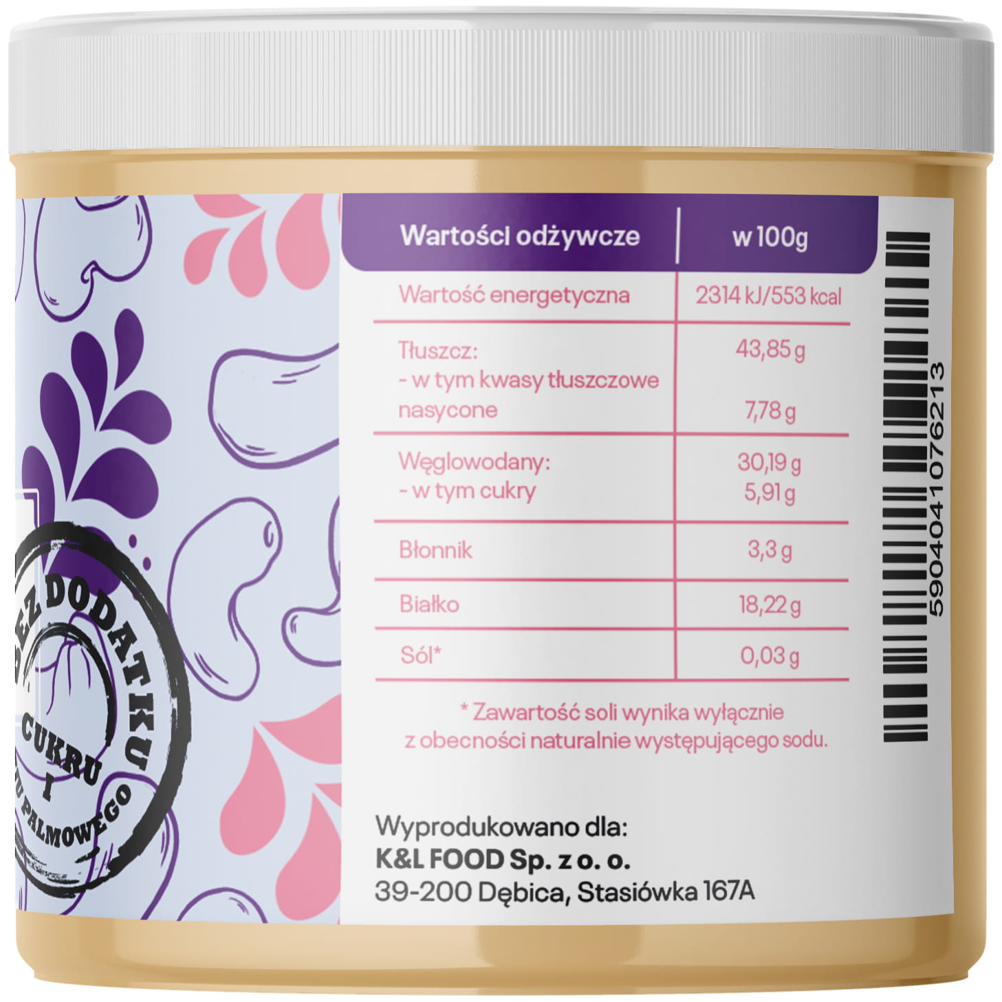 - Składniki 100% orzechy nerkowca, bez żadnych dodatków