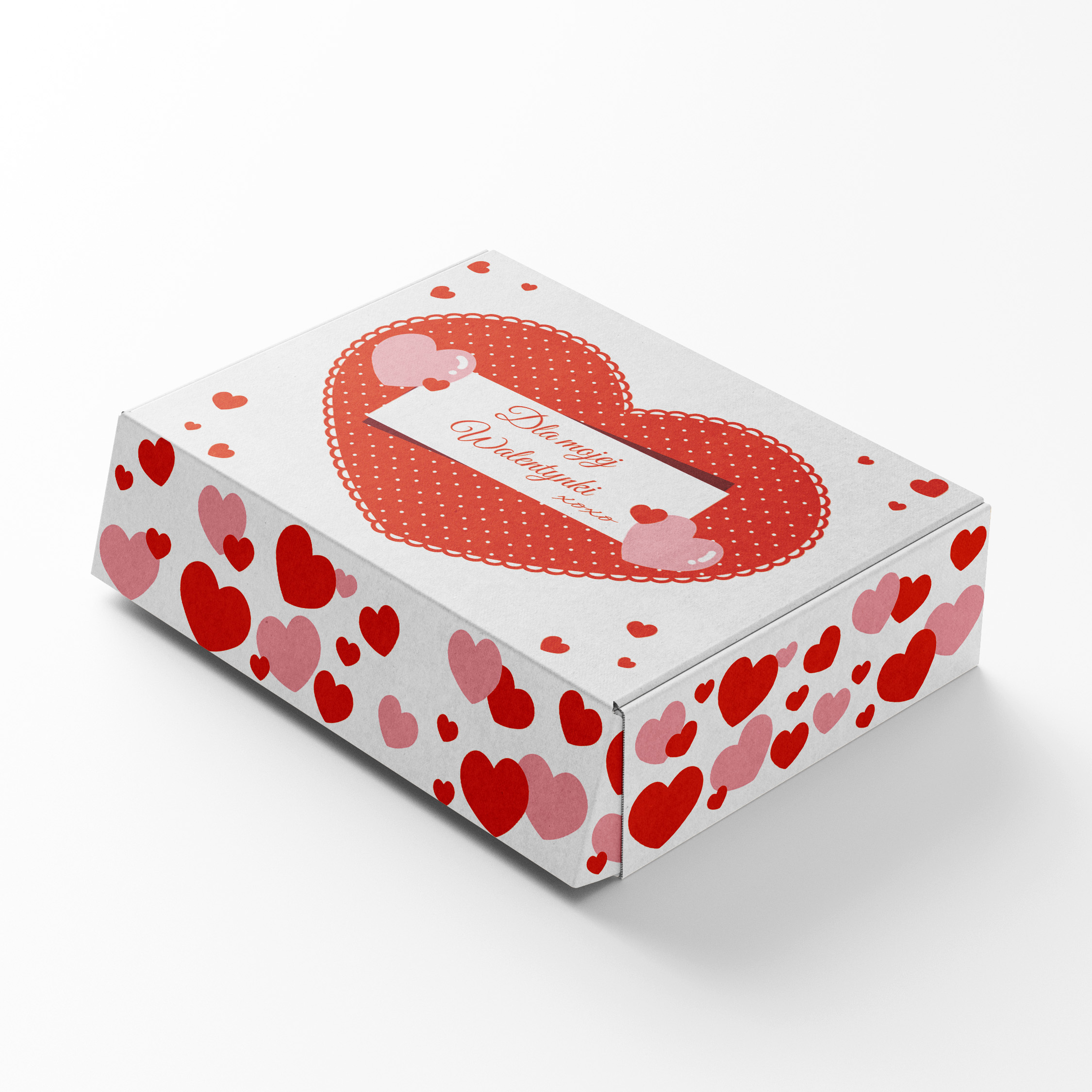 ▶️ Solidny, biały okazjonalny box „Dla mojej Walentynki” z grafiką.