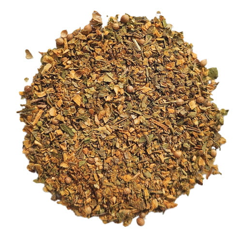 - Składniki Czosnek (SO2), gorczyca, chilli, majeranek, cebula, papryka słodka, bazylia, kolendra, oregano, kurkuma, kozieradka, tymianek, lubczyk nać, imbir, pieprz czarny mielony, kminek, papryka ostra